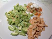 - Travasare i cetrioli, il salmone e le patate. Svuotare il