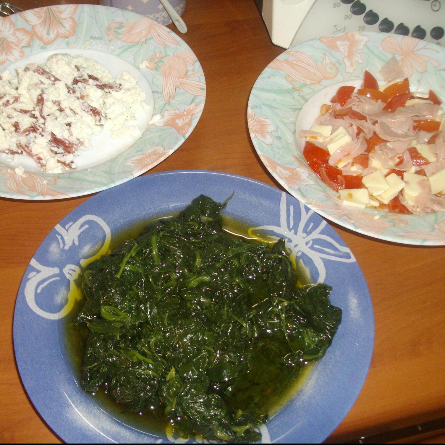 - 150 grammi di spinaci saltati in padella con olio e aglio