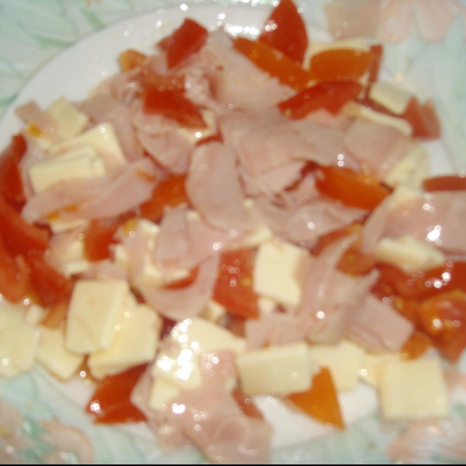 tagliare i pomodorini a pezzetti aggiungere il prosciutto tagliato e le sottilette tagliate a quadratini piccoli,aggiungere 2 cucchiai di olio di semi e mescolare,mettere da parte.