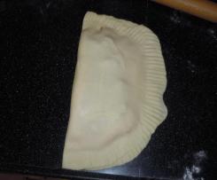 - Ripiegare la metà dell'impasto senza composto sull'altro chiudendo bene con le dita i bordi, pigiare con i rebbi della forchetta per accertarsi che i bordi siano ben chiusi altrimenti durante la cottura esce il ripieno;