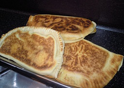 - Ritagliare con un coltello o una rotella l'eccesso di impasto e cuocere subito in una padella antiaderente prima da un lato poi dall'altro, deve diventare dorato senza sbruciacchiarsi;