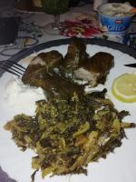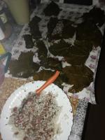 1. Scottare in acqua bollente le foglie, scolarle e allargarle sopra un telo. Nelcoperchio chiuso"coperchio chiuso" tritare 1 cipolla , l'aglio e il prezzemolo 5 sec vel 7. Tenere da parte. Nel  coperchio chiuso"coperchio chiuso" pulito versare 700gr di acqua 10m 100° vel 1 Unire il riso e poco sale 7m 100° antiorario"antiorario" vel 1.Scolare il riso unirlo alla carne con il trito preparato, L'origano la menta. sale e pepe e amalgamare.Mettere un pò di composto sopra ogni foglia ripiegarla e arrotolarla. Emulsionare il succo dei limoni con 40g di olio versarlo sugli involtini in una pirofila. Coprire a filo con acqua calda e lasciare marinare per 30m.Foderare il raroma con carta da forno bagnata e strizzata . mettere l'olio 1 cipolla tagliata sottile e gli invotini scolati.nel boccale mettere 800gr di acqua , sale , fette di limone. e portare a bollore 10m 100° vel 1. Posizionare il varoma e cuocere 40m a varoma vel 2.Lasciare intiepidire e servire gli involtini accompangnati da yogourt greco.