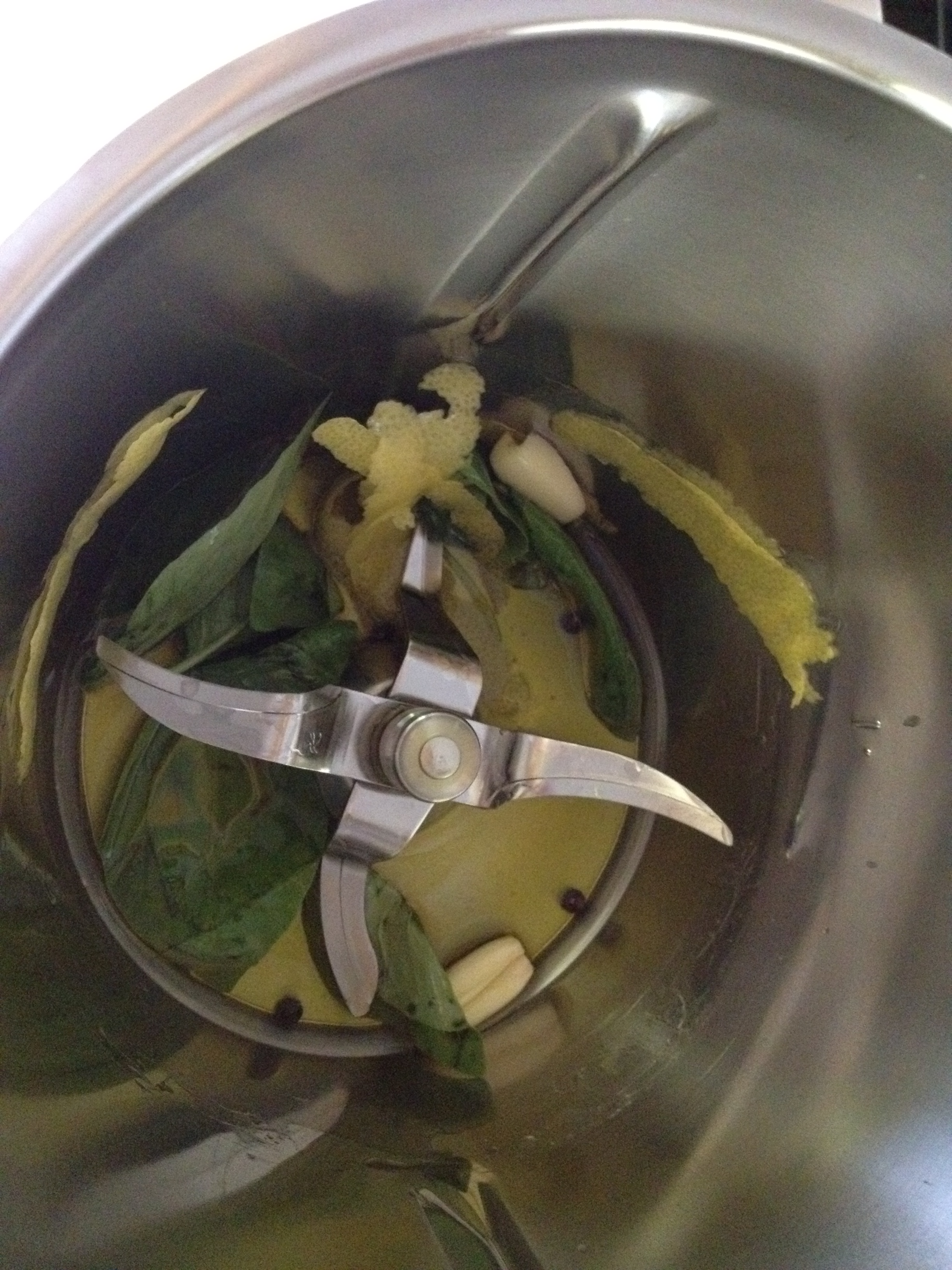 "coperchio chiuso" 50 gr di olio, uno spicchio di aglio, la buccia del limone, il pepe e il basilico cuocere :3 min, 100°, vel 1.Mettere da parte e lasciare mecerare per almeno 5 ore.