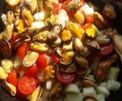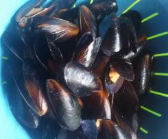"coperchio chiuso" mettere acqua posizionate cestello e dopo aver pulito e sciacquato le cozze mettere nel cestello e cuocere per 20 /25 minuti Varoma Vel 1 - Una volta cotte toglietele e sgusciatele tutte e metterle in frigorifero fino al momento del bisogno