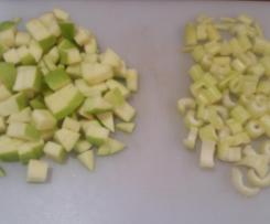 - Ora prendere una mela lavatela asciugatela e fare a dadini con la buccia e fate a pezzi anche il sedano logicamente lavato ed asciugato fate allo stesso modo con i pomodorini