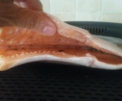 - Quando la trota sara' cotta dovrete toglire la sua pelle e lische come ho fatto io