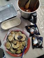 - Lavare le melanzane, tagliarle con la mandolina di dimensioni tutte uguali, e disporle in uno scolapasata a scolare sotto sale finchè perdono l’acqua. (almeno 30 minuti)