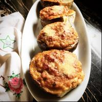 - Riempite le melanzane con il riso preparato (eventulamente inserite nel mezzo provola o formaggio filante), adagiate le melanzane ripiene in una teglia, irrorate con un bel filo d'olio, spolverizzate con il parmigiano avanzato e infornate a 170°C per circa 20 minuti o fino a quando la superficie non si presenta dorata.