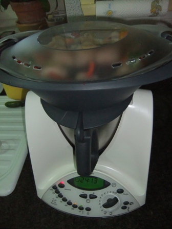 Inserire nel boccale il cestello già preparato e al di sopra porre il varoma, portare a cottura il tutto 25minuti Temp. Varoma vel.3.