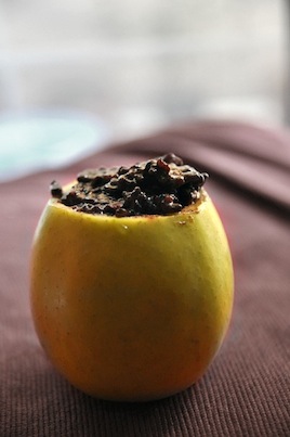 "antiorario" . Versare il composto dentro la mela e cospargiamo con 1 cucchiaio di zucchero e i 40 gr di burro fuso. Infornare per 20/30 min a 180°.Servire calde o tiepide spolverando sopra un po di zucchero a velo.