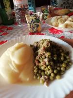 - 450 g di piselli surgelati, (fatti scongelare)