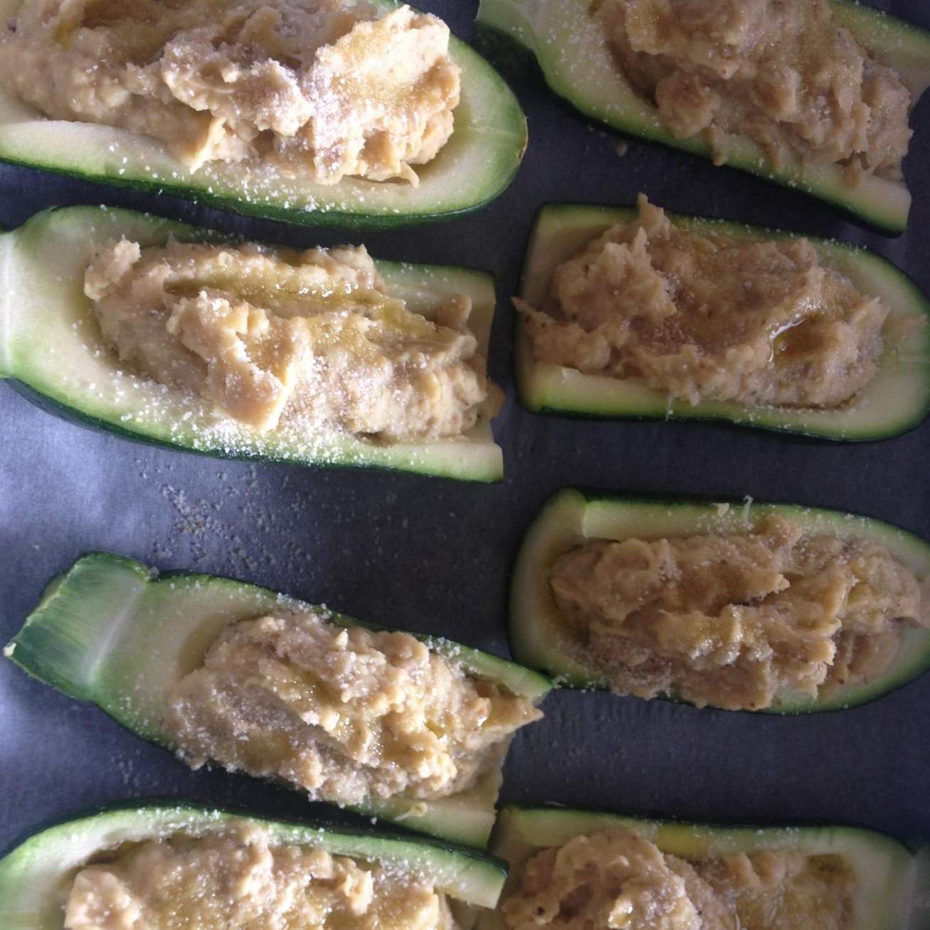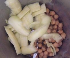 - Svuotarle e mettere il ripieno nel boccale con i ceci lessati, lo spicchio d'aglio, l'olio e un spolverata di maggiorana, salare a piacere e cuocere 10 minuti, vel 1 100°;