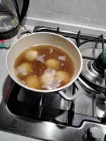 1) portate a bollore il brodo e fate cuocere i canederli per circa 8' a minimo bollore per non rischiare di romperli