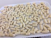 "velocità spiga" .Formare un panetto omogeneo. Con il palmo della mano ricavare dei rotolini fini e lunghi, tagliare ciascuno di essi (misura circa 2 cm) e dare la forma dei cavatelli