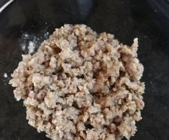 - 170 grammi salsiccia di maiale fresca (peso di due salsiccie) pelata e sbriciolata