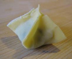 La forma particolare di questi piccoli ravioli richiede un po’ di pazienza, in alternativa si può dare una forma più semplice che non va naturalmente a scapito del sapore.