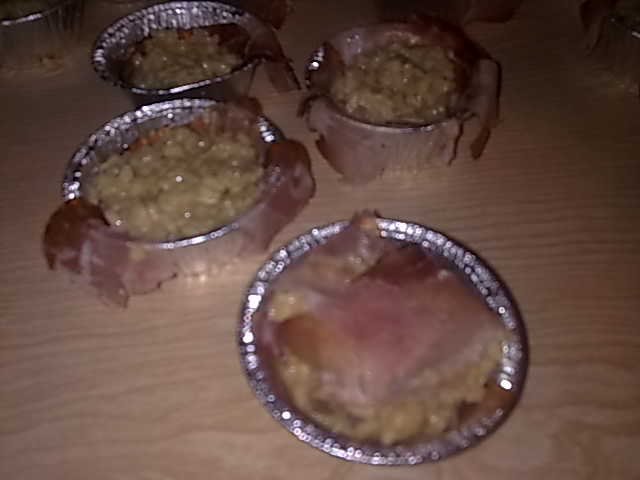 8. Riempire ogni pirottini con il risotto e ricoprire con il lembo di spek lasciato fuori, infornare per 15' a 180°.