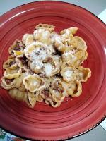 Io ho usato le conchiglie aperte poi nel mentre si cuoceva il sugo ho azionato un paio di secondi vel 5 così si sminuzzata la bresaola