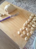 "velocità spiga" . Prendere l'impasto, e lasciarlo riposare su una spianatoia ricoperto con un canovaccio per circa un'ora. Trascorso questo lasso di tempo ricavare degli gnocchetti rigati utilizzando una semplice forchetta da cucina. Per il sugo: