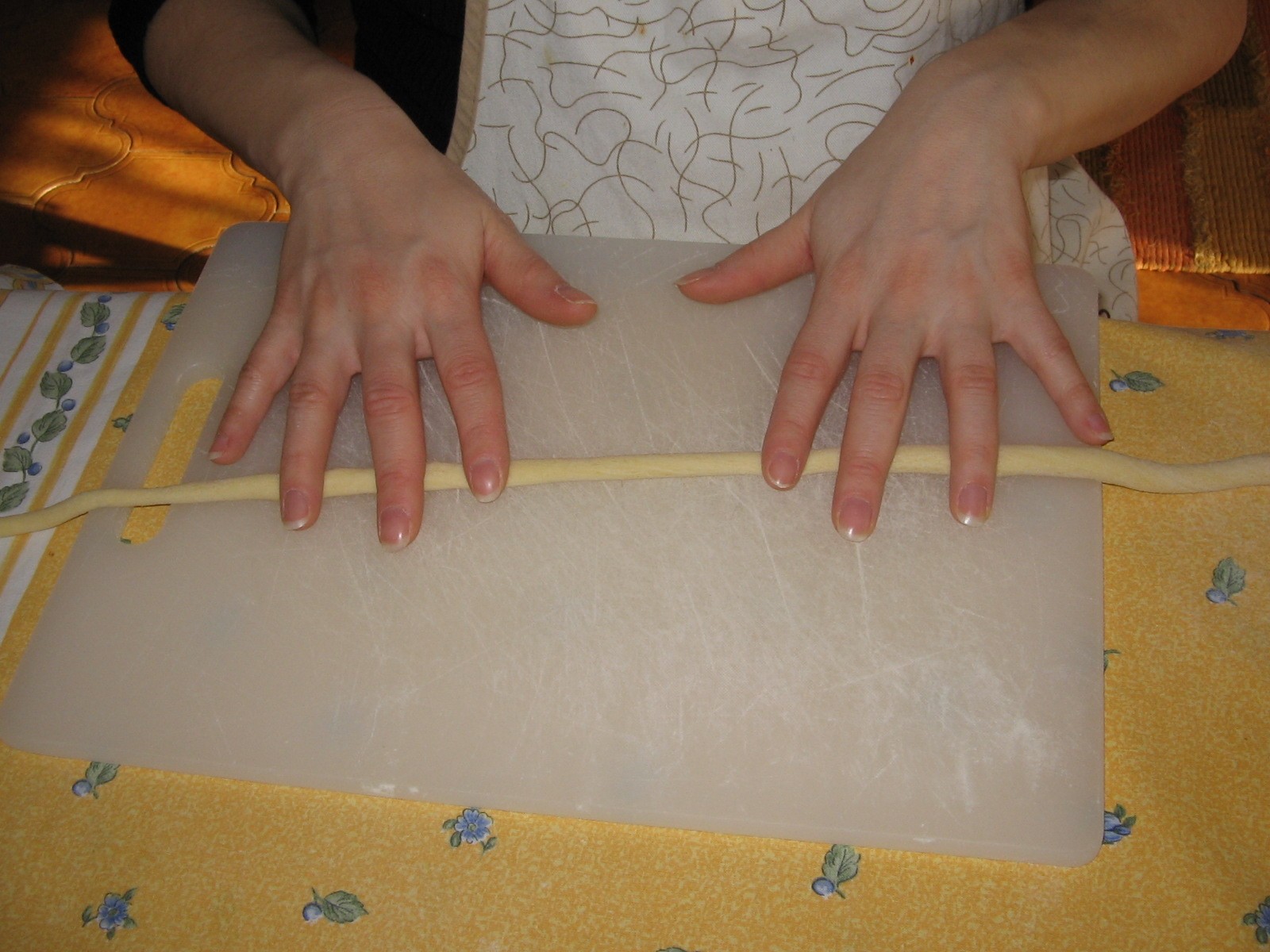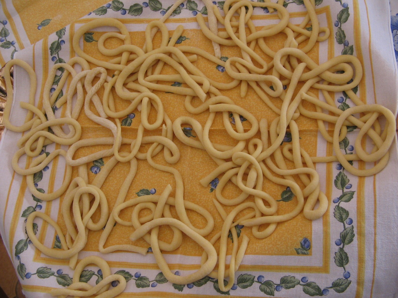 "velocità spiga" se dovesse servire aggiungere un pò di acqua o farina (l'impasto deve risultare consistente come l'impasto all'uovo). Ricavare con l'impasto ottenuto dei maccheroni lunghi da tirare su una spianatoia con le mani. Cuocere per 7 minuti in acqua salata e condire con ragù e formaggio grattuggiato.La quantità è per due persone abbondante.