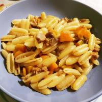 Malloreddus in ragu bianco di zucca salsiccia e funghi