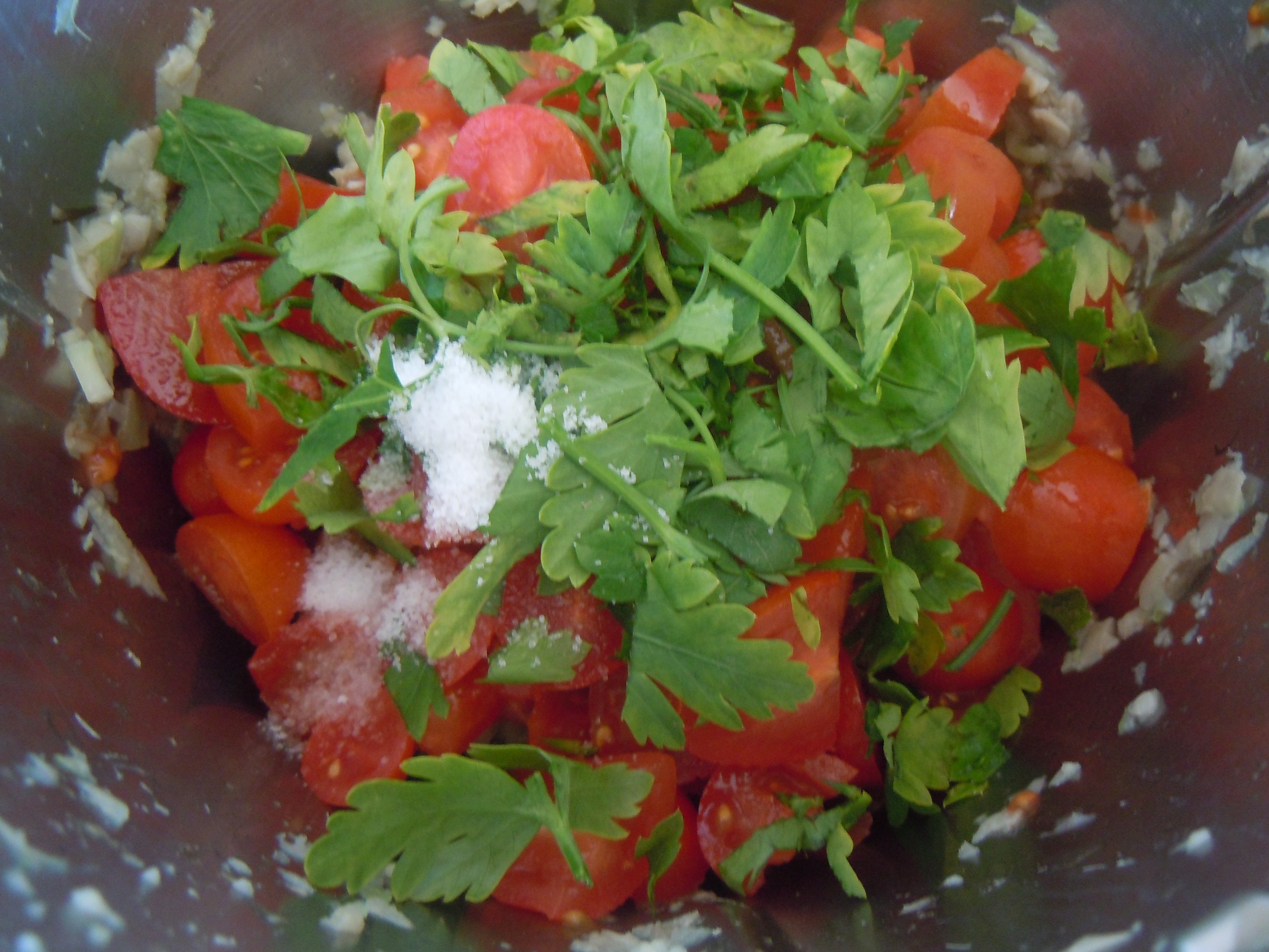 "antiorario" Unire i pomodori tagliati ed il prezzemolo.