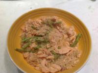 1. Gli ingredienti. Pulire il salmone (togliere pelle e spine) e tagliarlo a dadolini. Tagliare l'asparagina a pezzetti. Pulire i cipollotti e metterli nel