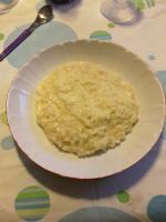 Buono! Ho usato riso carnaroli (14 min. di cottura), olio di riso (più delicato) e un po’ meno acqua (440 g.)