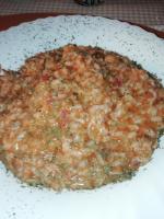 Bonooo io ho usato cipolla rossa e al posto del dado ho usato la polvere knorr al gusto pesce