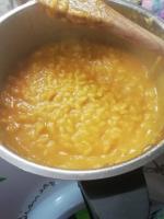 - Aggiungete 2/3 della zucca precedentemente pulita e tagliata a tocchetti e fate cuocere sempre a 100°C per 5 minuti a velocità 2, lasciandone quindi un po' in disparte;