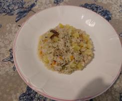 Un risotto semplice, con ingredienti poveri ma pieno di gusto. Da accompagnare con un vino rosè.