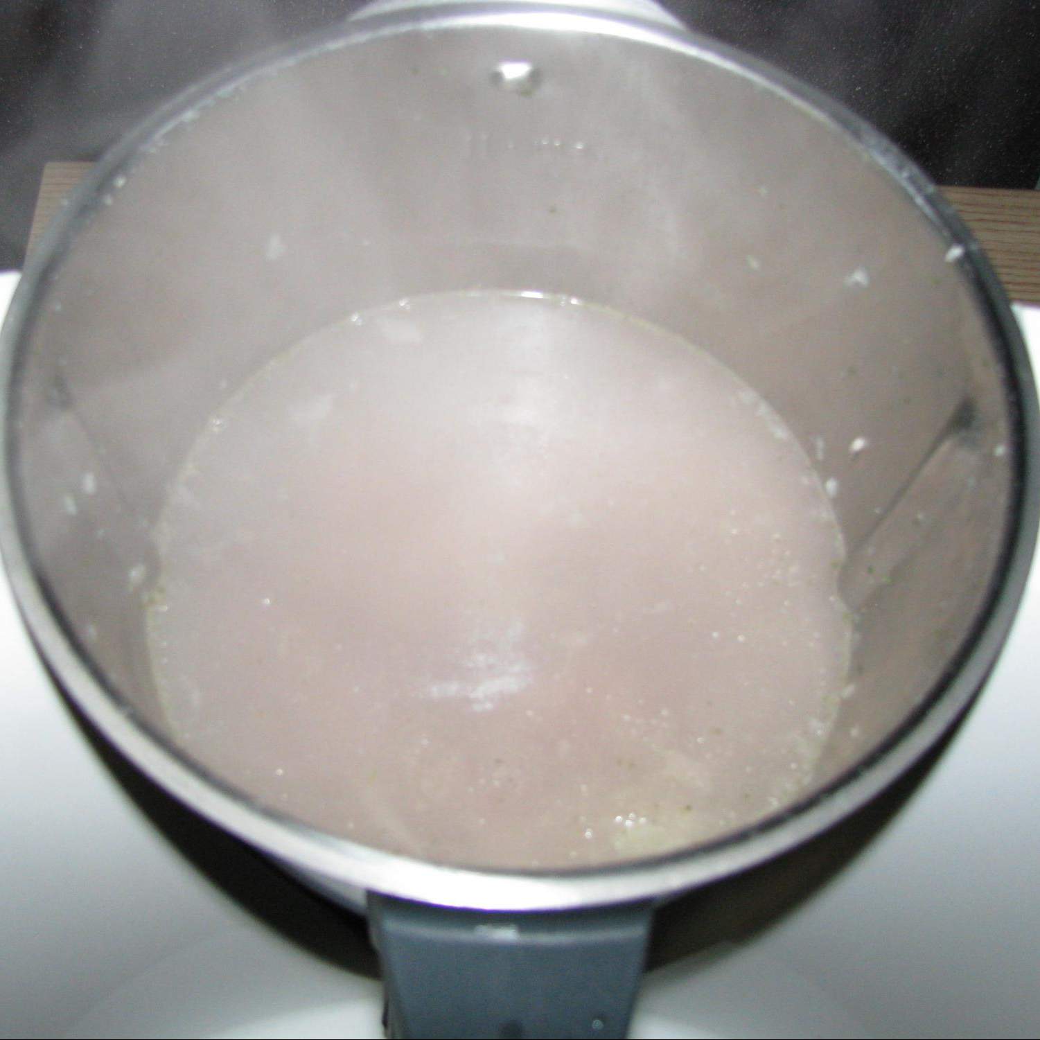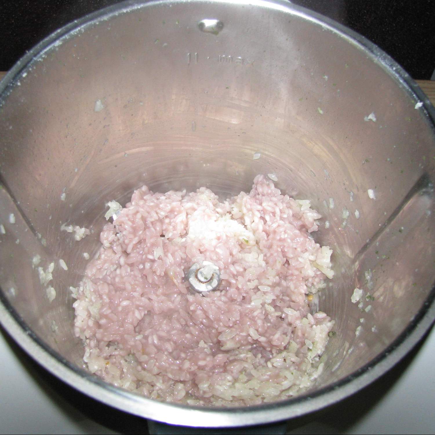 Aggiungere il riso; 2 minuti, 100°, velocità 1, antiorario.