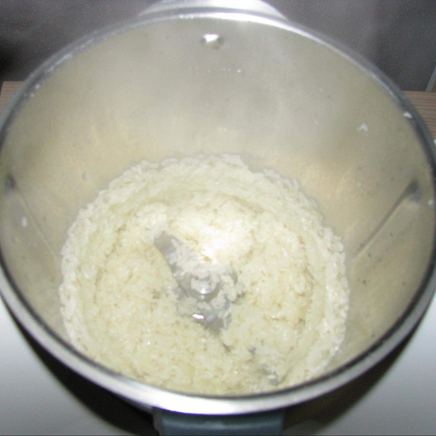 Abbassare il trito sul fondo e aggiungere l'olio; 3 minuti, 100°, velocità 1.