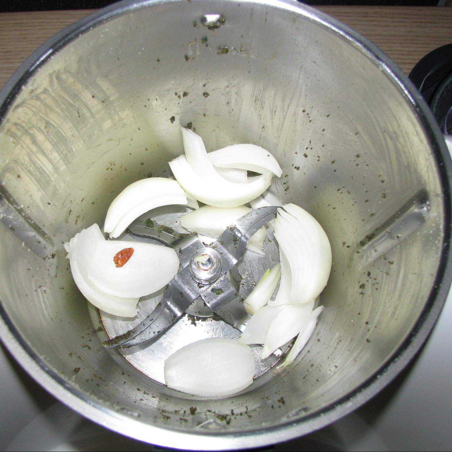 Tritare cipolla e peperoncino per 5 secondi a velocità 7.