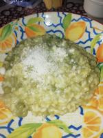 Questo risotto è ottimo anche consumato freddo o da portare ad un pic nic. Al posto dei piselli freschi, è possibile utilizzare piselli surgelati per comodità personale oppure per stagionalità.
