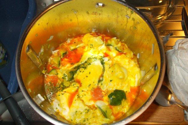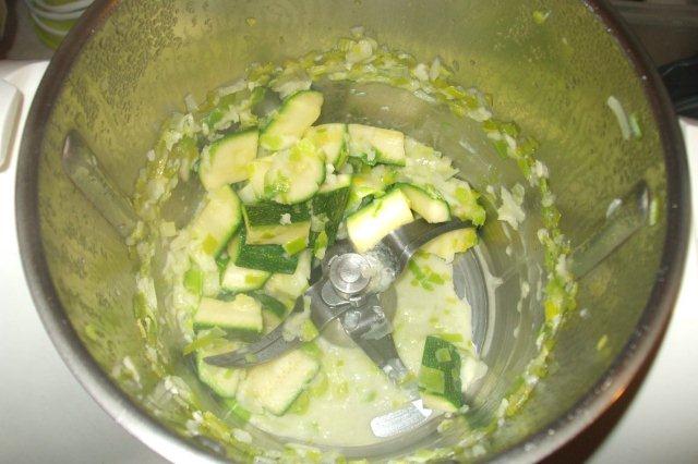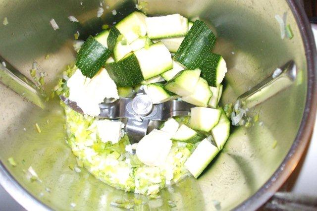 aggiungere il burro, e le zucchine tagliate a pezzetti e soffriggere: 3 min. 100°