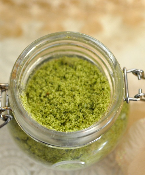 Mettere nel boccale perfettamente asciutto il sale e le erbe e tritare 30 se. vel 7. Chiudere in un vasetto con chiusura ermetica.