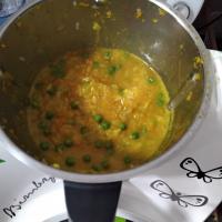 "antiorario" . - Spatolare, aggiungere i piselli, la zucca, l'acqua, il dado e cuocere per 14 minuti 100°