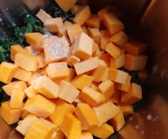 - Ora unite la verdura cavolo nero tagliato e zucca a dadini aggiustate di sale e pepe e cuocere per 6 minuti Varoma