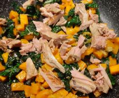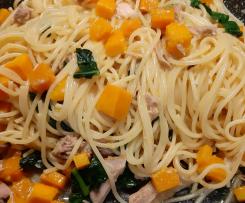SPAGHETTI CON ZUCCA CAVOLO NERO E FILETTI DI TONNO SOTT'OLIO(STAFFETTA HALLOWEEN)