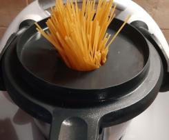"coperchio chiuso" mettere acqua e portare ebollizione per per 12 minuti 100° Vel 1 - Una volta che l'acqua è pronta mettere sale grosso q.b e mettere gli spaghetti e cuore per il tempo che c'e' scritto sulla confezione i miei 9 minuti 100 °