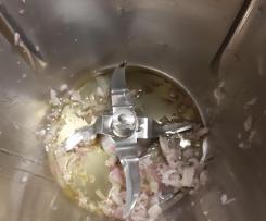 "coperchio chiuso" mettere lo scalogno e tritare 10 Sec Vel 8 - Radunate con spatola mettere olio e soffriggere per 3 minuti vel 1