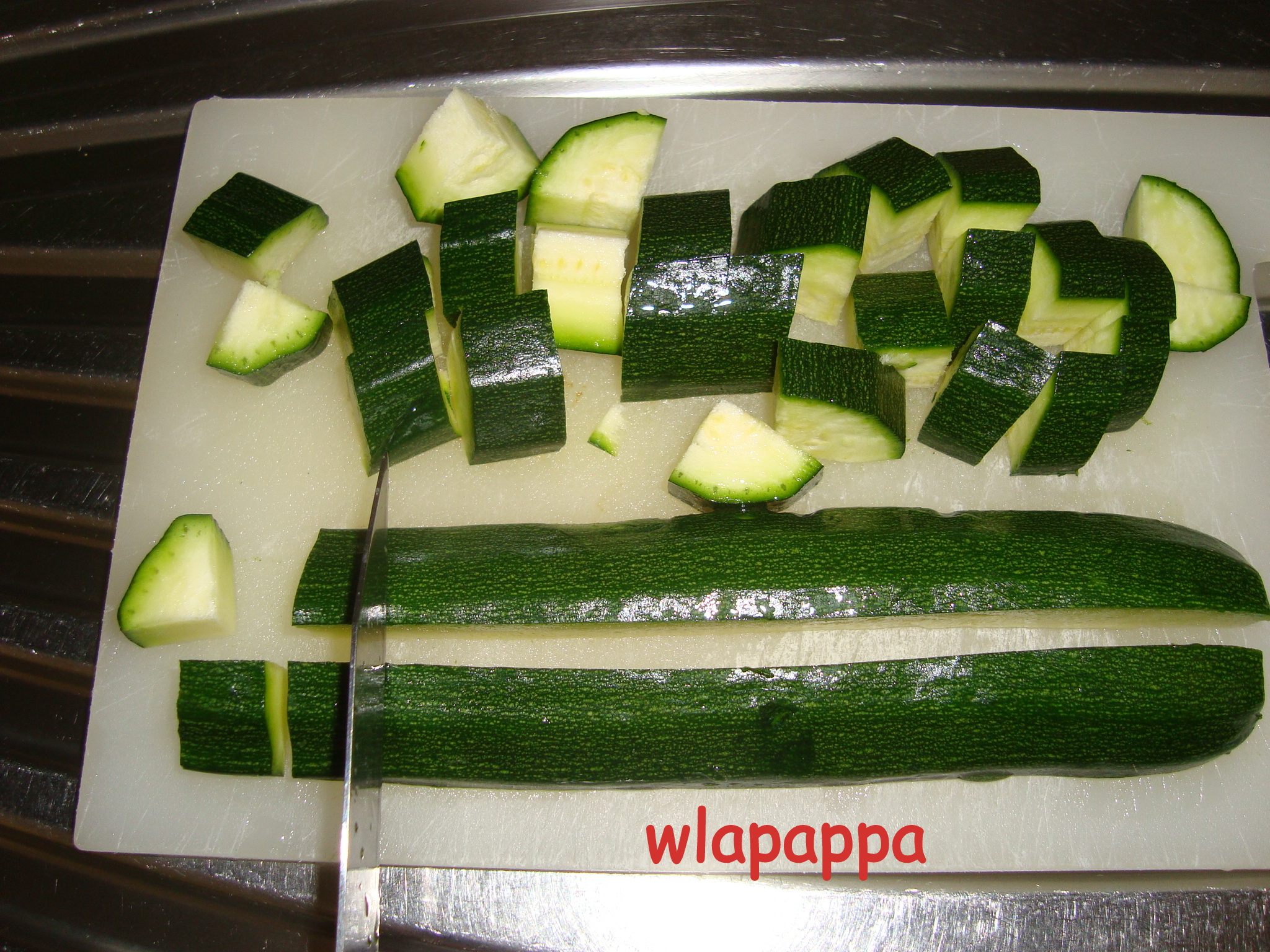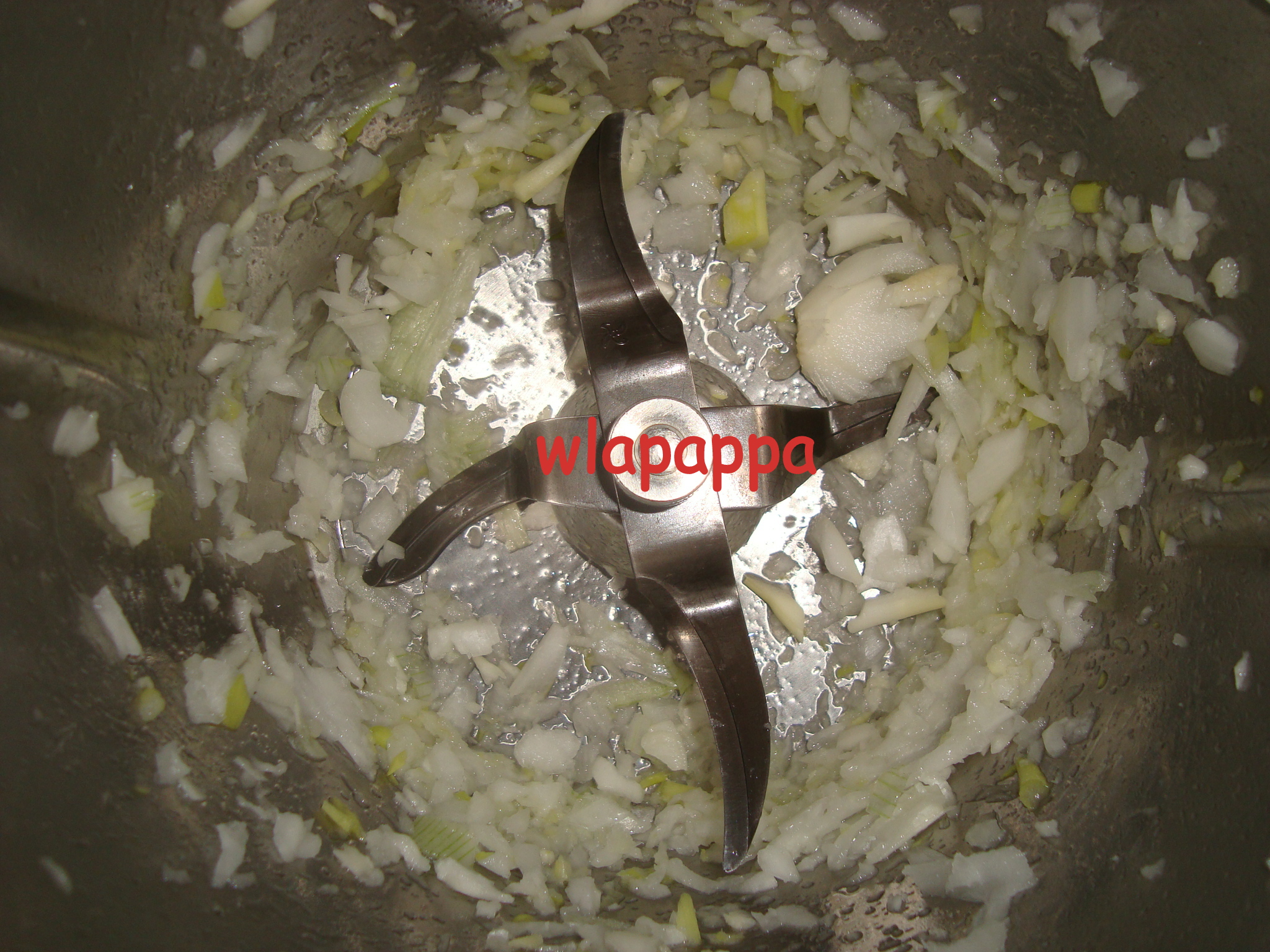 "coperchio chiuso" con un colpo di turbo, con la spatola riunire sul fondo, unire l'olio e soffriggere per 3 min. 100° vel. 1Nel frattempo lavare e tagliare le zucchine a tocchetti, aggiungerle nel
