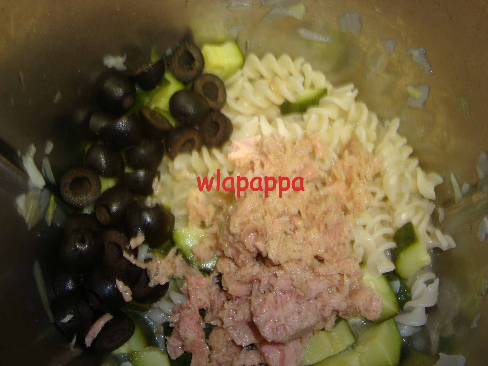 "velocità soft" , inserire la pasta, mescolare con la spatola e cuocere per il tempo indicato sulla confezione.Nel frattempo scolare il tonno e tagliare le olive a proprio piacimento, a meta' o a rondelle.
