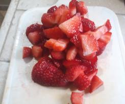 - Per prima cosa pulire le fragole e tagliatele a pezzi non troppo grossi