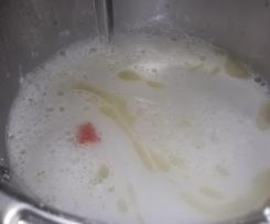 "velocità soft" io le ho fatte fresche ho usato la ricetta del libro base per pasta fresca - Una volta cotte le taglitelle scolatele e mettere le nella pentola che precedentemente abbiamo messo le fragole con la panna che avremo fatto scaldare qualche minuti prima di mettere le tagliatelle