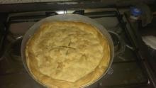 "coperchio chiuso" unire zucchero, cannella e amido di mais e mescolare per 10 sec. vel.5. Sbucciare ed affettare le mele, metterle in una ciotola capiente, irrorarle con il succo di limone ed aggiungere la miscela di zucchero, cannella e amido di mais. Mescolare delicatamente il tutto per far aderire bene il composto alle fette. Stendere 2/3 della frolla in una tortiera foderata con carta da forno, facendo arrivare la pasta fino al bordo. Bucherellare il fondo con i rebbi di una forchetta e ricoprirlo con uno strato di pan di spagna o di savoiardi. Riempire il guscio di frolla con le mele e chiudere il tutto con la frolla rimanente, praticando alcune incisioni per facilitare l'uscita dell'umidita'. Infornare a 180 gradi per un ora.
