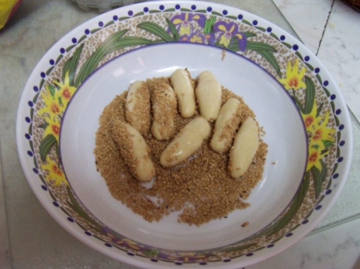 - Passarli nel latte, poi nel sesamo asciutto e metterli su una teglia rivestita di carta forno, un po' distanziati l'uno dall'altro.