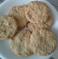 ho sostituito la farina integrale con quella di grano saraceno, ho messo zucchero di canna e 4 cucchiai di acqua di cocco. Ho aumentato i tempi di cottura a 20 minuti perchè li preferisco croccanti, visto che sono venuti un pò grossi. Mi sono piaciuti molto. Grazie della ricetta!!
