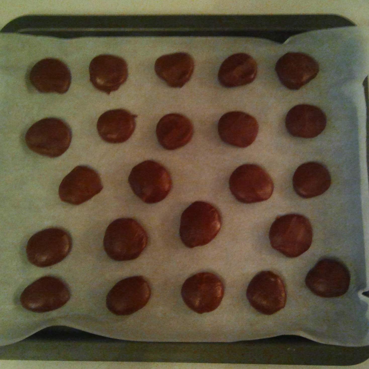 "coperchio chiuso" la farina, la nutella e l'uovo e amalgamare il tutto 30-40 secondi vel. 5.L'impasto deve essere bello amalgamato.Formare delle palline e schiacciarle leggermente (ne escono circa 22). Posizionare le palline su una teglia ricoperta da carta forno.